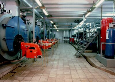 Kazanlar : 4 adet 180 m³ 12 atü skoç tip kızgın su, 2 adet 100 m² 6 atü skoç tip buhar kazanı